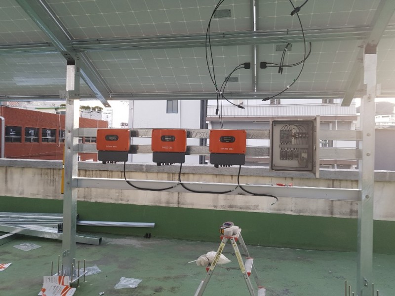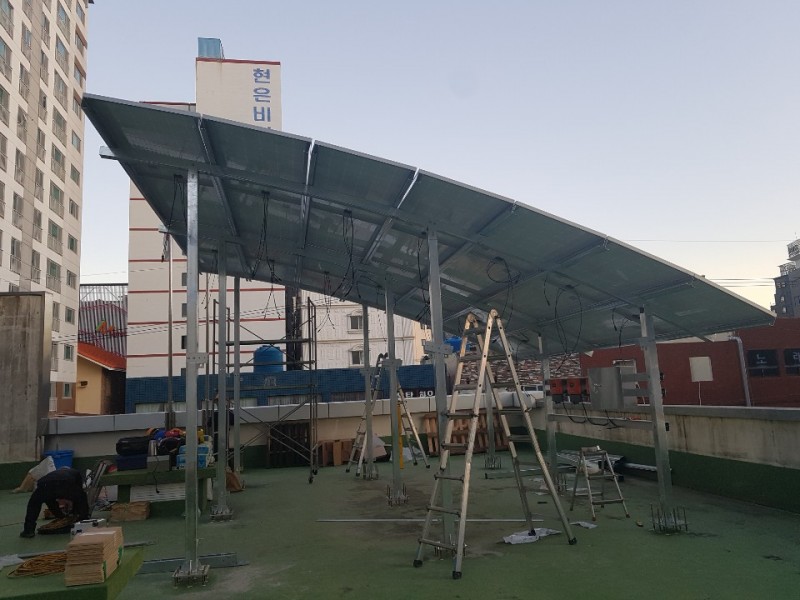 진영 상가 빌딩 태양광 알루미늄구조물로 시공 약 20kw
